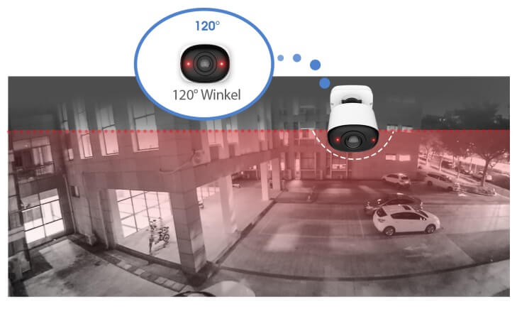 Zusätzlich sorgt die einstellbare Beleuchtungsstärke der IR-LEDs für eine konstante und effiziente Infrarot-Leistung. Dank des durchdachten Designs, bei dem IR-LEDs und Objektiv räumlich getrennt sind, werden IR-Reflexionen effektiv vermieden – für klare und brillante Ergebnisse bei jeder Aufnahme.